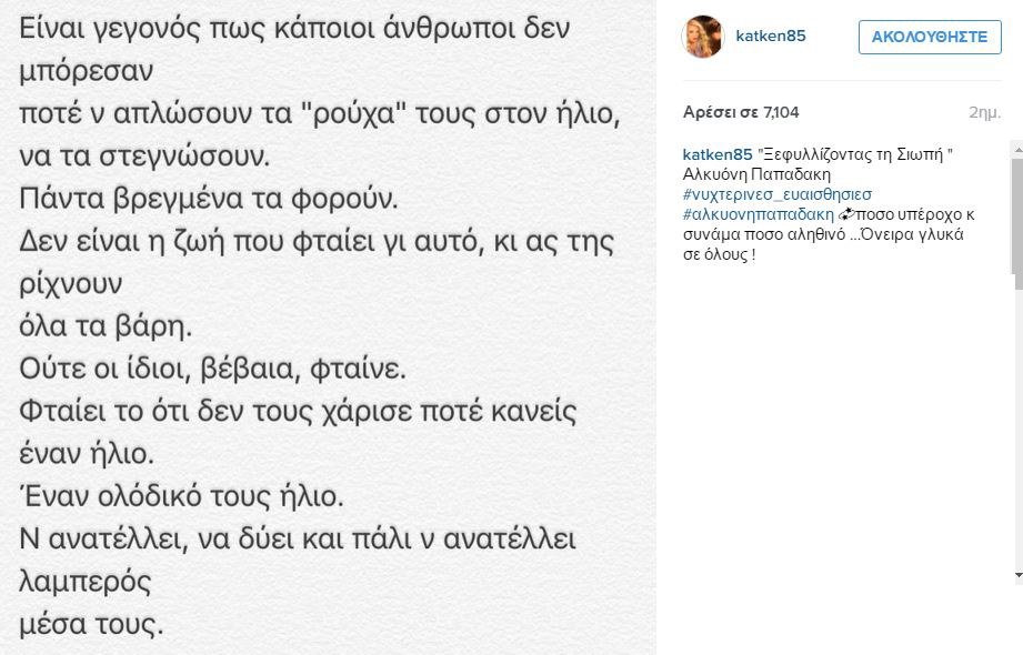 Την παγκόσμια ημέρα της ποίησης, η Κατερίνα Καινούργιου αποφάσισε να ποστάρει ένα ποίημα όλο νόημα.