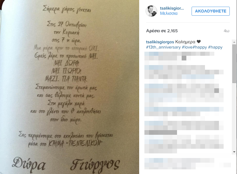 Ο Γιώργος Τσαλίκης και η σύζυγός του Δώρα του παντρεύτηκαν σαν σήμερα στις 27 Οκτωβρίου 13 χρόνια πριν!