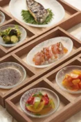 Στο εστιατόριο Louis Vuitton στο Saint Tropez, τα πιάτα δεν ξεφεύγουν πολύ και από την γαλλική gourmet κουζίνα. Υπάρχουν διάφορα πρωτότυπα και με φαντασία. Από το ekiben, που ήταν ένα γιαπωνέζικο γεύμα που συνήθως το προσέφεραν στα τρένα, αλλά μέχρι και τάκος μελιτζάνας, έως prime rib και ελαφρά tapas.
