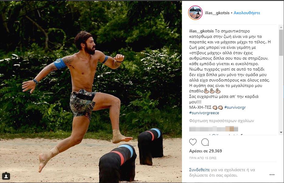 ΜΑ-ΧΗ-ΤΕΣ #survivorgr #survivorgreece”, έγραψε δίπλα στη φωτογραφία που ανέβασε από τη συμμετοχή του στο παιχνίδι.Δείτε την ανάρτηση: