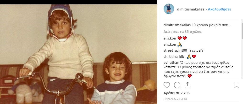 Ο Δημήτρης Μακαλιάς ανέβασε μία φωτογραφία στον προσωπικό του λογαριασμό στο Instagram από την παιδική του ηλικία που παίζει μαζί με τον αδερφό του και την οποία συνόδευσε με το σχόλιο: “10 χρόνια μακριά σου…”