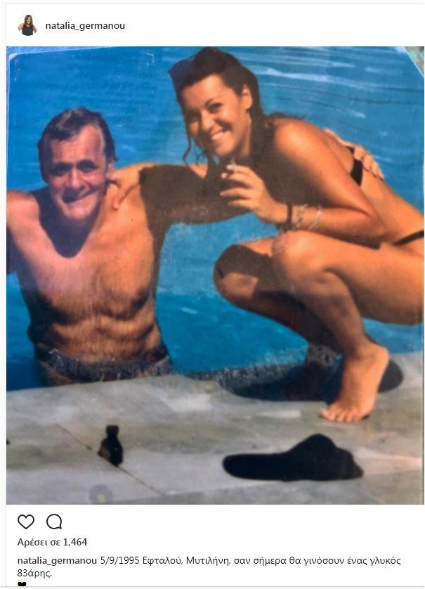 Τον αξέχαστο Φρέντυ Γερμανό θέλησε να τιμήσει η κόρη του, Ναταλία Γερμανού, με αφορμή τα γενέθλιά του, που θα ήταν σαν σήμερα.Η παρουσιάστρια ανέβασε στον προσωπικό της λογαριασμό στο instagram, ένα συγκινητικό μήνυμα για τον αγαπημένο της πατέρα, με μία φωτογραφία όπου είναι οι δυο τους σε διακοπές, γράφοντας χαρακτηριστικά: «5/9/1995 Εφταλού, Μυτιλήνη, σαν σήμερα θα γινόσουν ένας γλυκός 83άρης».