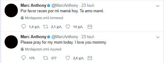 Η μητέρα του τραγουδιστή είχε εισαχθεί στο νοσοκομείο πριν από λίγες ημέρες, και τότε ο πρώην σύζυγος της Τζένιφερ Λόπεζ είχε γράψει στο Twitter ένα μήνυμα, ζητώντας από όλους τους φίλους και ακολούθους του να προσευχηθούν για εκείνη.
