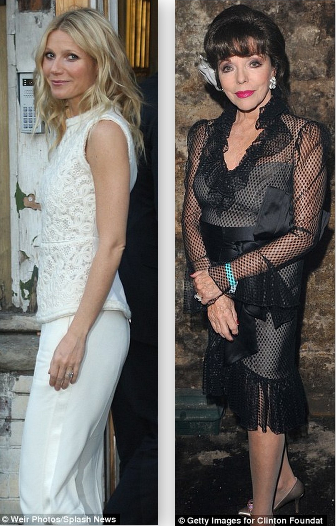 Κάποιοι άλλοι από τους καλεσμένους, δήλωσαν: “Οι τοίχοι έσταζαν και μύριζε ο χώρος. Ήταν σαν να περπατούσαμε σε σπηλιά! Φύγαμε στις 21:15,μαζί με κάποιους άλλους προσκεκλημένους. Ήταν τόσο δυσάρεστο και δεν συνέβη και τίποτα”. Aλλοι, πάλι, παραπονέθηκαν πως ο Bill Clinton μίλησε μόνο για δύο λεπτά και πως δεν είχαν καν την δυνατότητα να τον δουν και να τον ακούσουν, γιατί υπήρχε πολύς κόσμος και δεν χωρούσαν. Πάντως, αν παρατηρήσει κάποιος τις φωτογραφίες, τόσο της Gwyneth όσο και της Joan Collins, συμπεραίνει ότι πράγματι ο χώρος της εκδήλωσης, είχε πολλά προβλήματα. Οι ξεφτισμένοι τοίχοι βγάζουν μάτι…