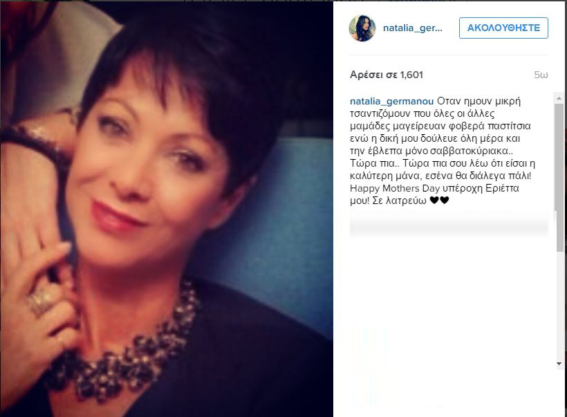 Η Ναταλία Γερμανού έγραψε ένα τρυφερό μήνυμα στο instagram για τη μητέρα της.