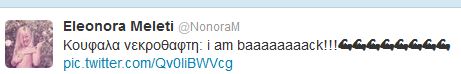 «Κουφαλα νεκροθαφτη: i am baaaaaaaack!!», ανέφερε χαρακτηριστικά και συνόδεψε το σχόλιο με τη συγκεκριμένη φωτογραφία.