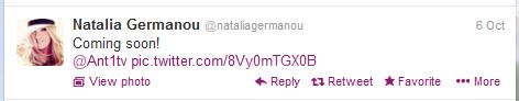 Με τη φράση “coming soon” και με μία φωτογραφία στην οποία φοράει ψηλοτάκουνα και γάντια του μποξ, η Ναταλία Γερμανού μας έδωσε μία γεύση από τη νέα της εκπομπή στον ΑΝΤ1 μέσω twitter.