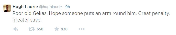 Ο Βρετανός ηθοποιός Χιου Λώρι, γνωστός στο Ελληνικό κοινό από την δημοφιλή τηλεοπτική σειρά, Dr. House είναι φανατικός του Μουντιάλ και έκανε αναφορά στον Φάνη Γκέκα.