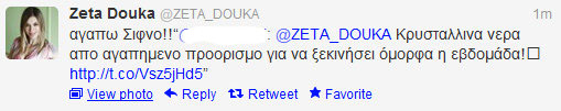 To twitter είναι η “γέφυρα” των μεγάλων πόλεων με τα…νησιά. Οι χρήστες του ανεβάζουν φωτογραφίες και “δροσίζονται” λίγο ακόμα κι εκείνοι που πρέπει να επιβιώσουν στις υψηλές θεμοκρασίες.Η ηθοποιός Ζέτα Δούκα αυτό ακριβώς έκανε, ποστάροντας μια εκπληκτική φωτογραφία γεμάτη…θάλασσα!