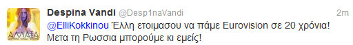 Χθες το βράδυ, την ώρα της Eurovision, το twitter κόντεψε να “καταρρεύσει” από τις χιλιάδες ταυτόχρονες αναρτήσεις. Ανάμεσα σε αυτούς που “τιτίβιζαν” και αρκετοί γνωστοί Έλληνες…