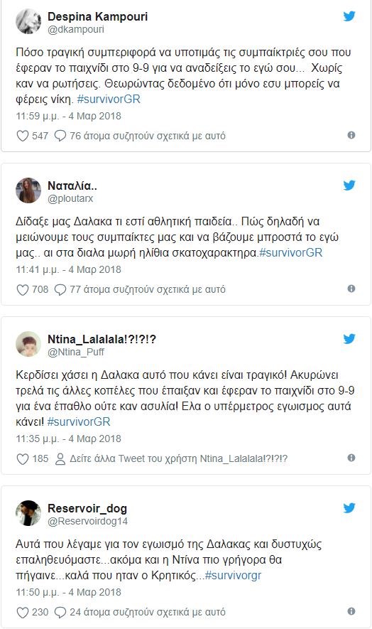 Tο Twitter “τα βάζει” με τη Δαλάκα – Ποιος πρώην παίκτης του Survivor τη χαρακτήρισε εγωίστρια – ΦΩΤΟ