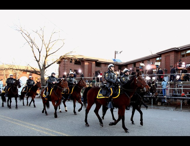Η έφιππη αστυνομία κάνει έναν τελευταίο έλεγχο λίγο πριν φτάσουν οι προσκεκλημένοι για να αποχαιρετήσουν για πάντα την Whitney Houston.