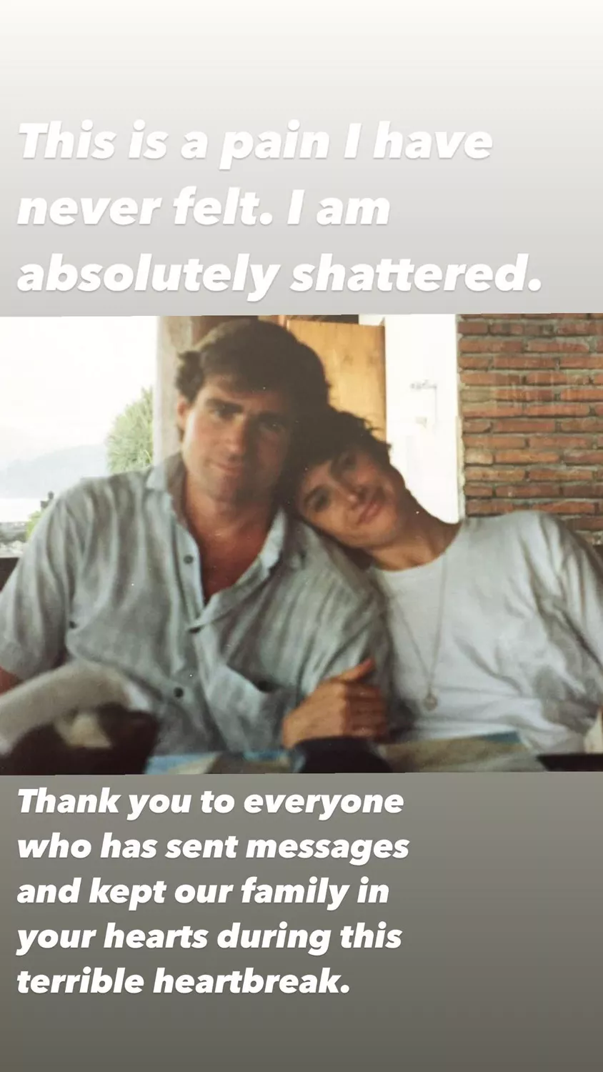 Η 25χρονη κόρη του ηθοποιού Ellie, θέλησε μέσω του προσωπικού της προφίλ στο instagram να εκφράσει την θλίψη της, αλλά και να ευχαριστήσει τον κόσμο που της έχει στείλει μηνύματα για να την συλλυπηθεί.