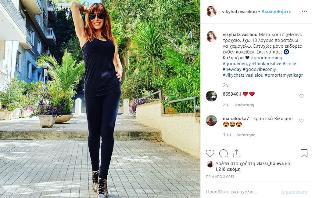 Τροχαίο ατύχημα είχε η Βίκυ Χατζηβασιλείου και όπως αποκάλυψε σε ανάρτηση που έκανε στον προσωπικό της λογαριασμό στο Instagram γλίτωσε με μερικές εκδορές.