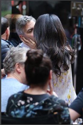 Η Αμάλ Κλούνεϊ εμφανίστηκε στο πλατό ντυμένη casual, με τζην και φλόραλ τοπ. Ο αγαπημένος της μόλις την είδε έτρεξε να την αγκαλιάσει και της έδωσε ένα τρυφερό φιλί. Αμέσως μετά η επιτυχημένη δικηγόρος κάθισε μαζί με τα μέλη της παραγωγής και παρακολούθησε τη συνέχεια των γυρισμάτων.