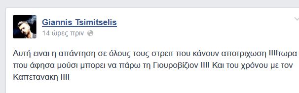 Με χιούμορ σχολίασε στην προσωπική του σελίδα στο Facebook, ο Γιάννης Τσιμιτσέλης τη νίκη της Κοντσίτα στη Γιουροβίζιον.