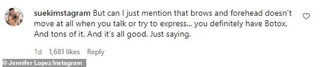 Περήφανη η Τζένιφερ Λόπεζ επεδείκνυε το ολόφρεσκο πρόσωπό της και προωθούσε τα προϊόντα περιποίησης προσώπου που έχει λανσάρει έπειτα από τρία χρόνια ανάπτυξης της εταιρείας της, όταν ένας χρήστης του διαδικτύου της επιτέθηκε φραστικά κατηγορώντας την ότι έχει κάνει τόνους μπότοξ.