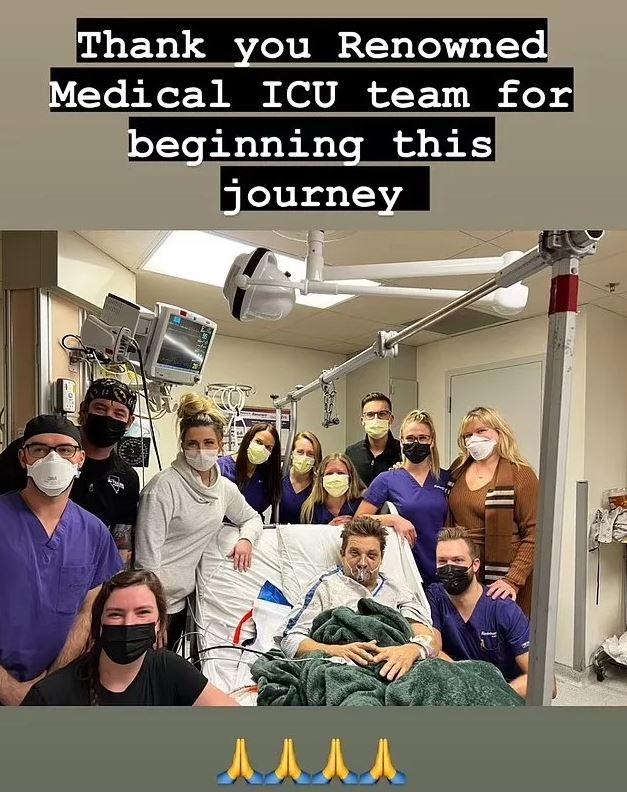 Με ανάρτησή του στο Instagram την Παρασκευή, ο Ρένερ ευχαρίστησε το ιατρικό προσωπικό του νοσοκομείου για τη βοήθεια στην ανάρρωσή του.