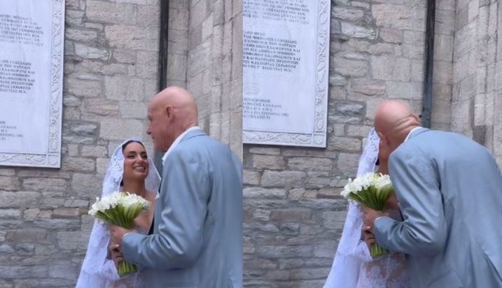 Το νυφικό της Ελπίδας Ιακωβίδου ήταν μάξι και κολλητό, με το ονειρικό πέπλο που επέλεξε να κάνει όλη την διαφορά.
