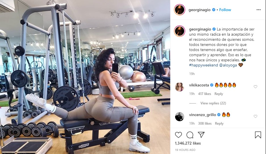 Η αρραβωνιαστικιά του Κριστιάνο Ρονάλντο δουλεύει σκληρά για να διατηρήσει τις άψογες αναλογίες της. Η Τζορτζίνα Ροντρίγκες δημοσίευσε στον λογαριασμό της στο instagram φωτογραφίες από την ώρα που γυμνάζεται, στο ειδικά διαμορφωμένο γυμναστήριο που έχουν στο σπίτι τους. Η 26χρονη έδειξε το πώς κάνει stretching μετά τη γυμναστική για να αποφύγει τυχόν τραυματισμούς. Βέβαια, οι θαυμαστές της δεν άφησαν ασχολίαστα το κολάν και το μπουστάκι που φορούσε.