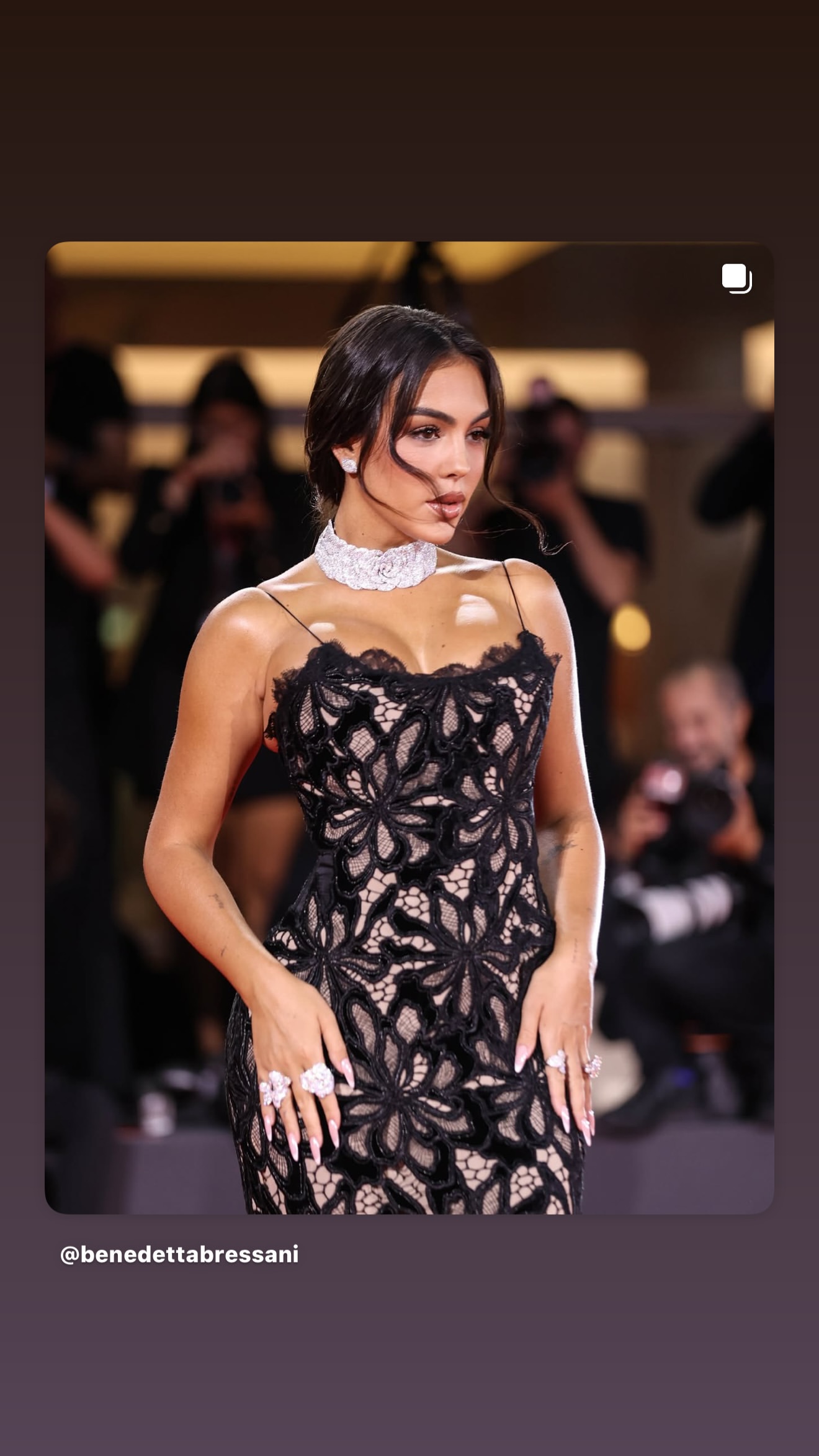 Έδειχνε εντυπωσιακή με ένα λαμπερό μαύρο δαντελένιο φόρεμα που αναδείκνυε την εκπληκτική σιλουέτα της.