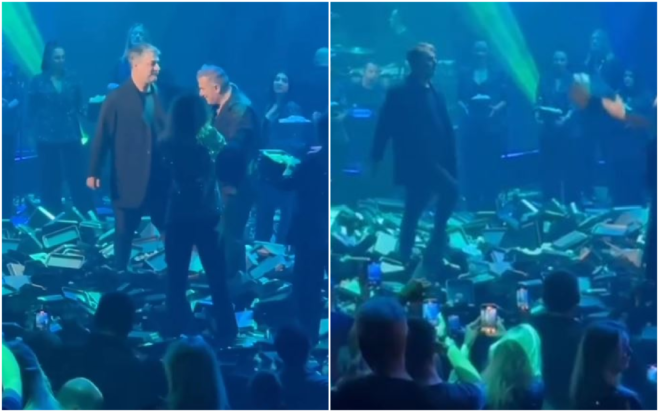 Μέσα μάλιστα από βίντεο που δημοσιεύτηκε στα social media, βλέπουμε τη στιγμή που ο Βασίλης Μπισμπίκης ανέβηκε στην πίστα, όσο τραγουδούσε ο Αντώνης Ρέμος, με τον πρώτο να δέχεται πανέρια με γαρύφαλλα, όσο χόρευε ζεϊμπέκικο.
