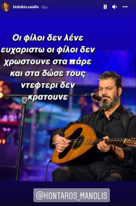 «Οι φίλοι δεν λένε ευχαριστώ, οι φίλοι δεν χρωστούνε, στα πάρε και τα δώσε τους ντεφτέρι δεν κρατούνε», έγραψε ο Βασίλης Μπισμπίκης.