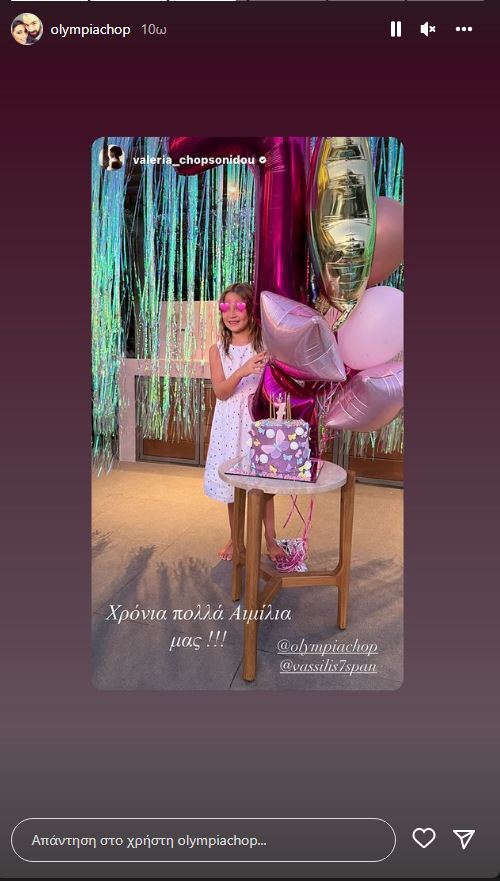 Ξεχωριστή ήταν η χθεσινή ημέρα για την Ολυμπία Χοψονίδου και τον Βασίλη Σπανούλη. Η κόρη τους Αιμιλία είχε τα γενέθλιά της και έγινε 7 ετών. Το ζευγάρι διοργάνωσε ένα εντυπωσιακό παιδικό πάρτι και γιόρτασε παρέα με φίλους και συγγενείς.