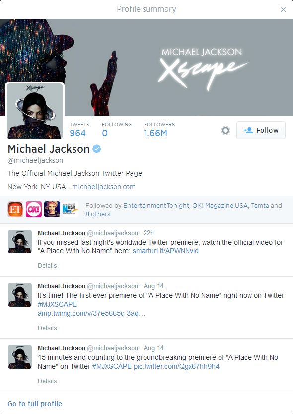 Στη σελίδα του Τζάκσον στο twitter αναρτήθηκε πριν από λίγες ώρες η ανακοίνωση ότι το βίντεο κλιπ του τραγουδιού «A place with no name» είναι διαθέσιμο. Το τραγούδι που γράφτηκε πριν από 22 χρόνια συμπεριλαμβάνεται στο άλμπουμ «Xscape», το οποίο περιέχει όλα τα ακυκλοφόρητα τραγούδια του Michael Jackson.