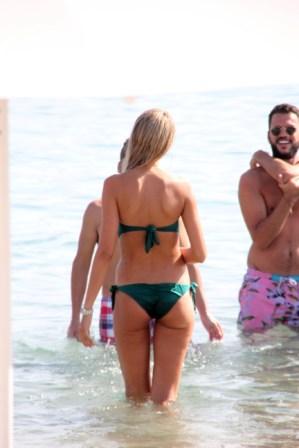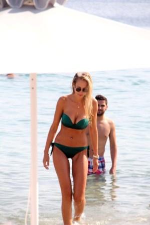 Η κάμερα του Mykonos Live Tv την εντόπισε σε κοσμική πλαζ να χαίρεται τον ήλιο και τη θάλασσα, φορώντας καυτό σκούρο πράσινο μπικίνι.