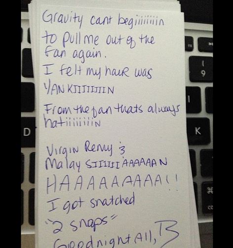 “H βαρύτητα δεν μπορεί να με τραβήξει από τους θαυμαστές μου, ένιωσα τα μαλλιά μου να τραβιούνται από τον ανεμιστήρα, που πάντα τα ζήλευε…”.