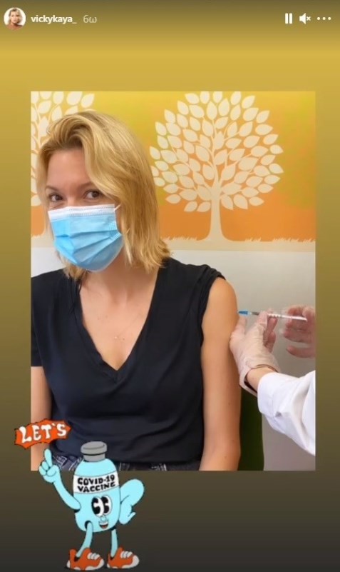 «Let’s go Covid -19», σχολίασε στο στιγμιότυπο που ανέβασε στα InstaStories την ώρα που εμβολιαζόταν.