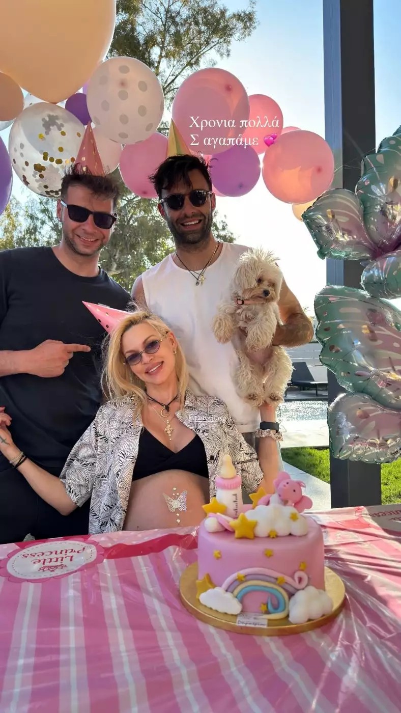 Η μέλλουσα μανούλα ετοίμασε μια τούρτα υπερπαραγωγή σε ροζ χρώμα και μαζί με αγαπημένους φίλους του συντρόφου της γιόρτασαν όλοι μαζί.