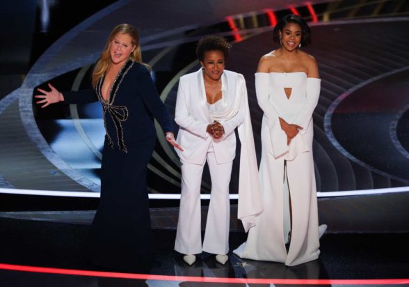 Κατά τη διάρκεια αυτής της σύντομης διακοπής του πάρτι του αμερικανικού κινηματογράφου, στις γιγαντοοθόνες προβάλλονταν μηνύματα που καλούσαν τους θεατές να στείλουν ανθρωπιστική βοήθεια, απαριθμώντας τις ανάγκες των Ουκρανών για βασικά είδη, ανάμεσά τους «τροφή», «ιατρική φροντίδα» και φάρμακα, ή ακόμη για «κουβέρτες». «Σας ζητάμε να βοηθήσετε την Ουκρανία με όποιο τρόπο μπορείτε», ανέφερε άλλο μήνυμα.