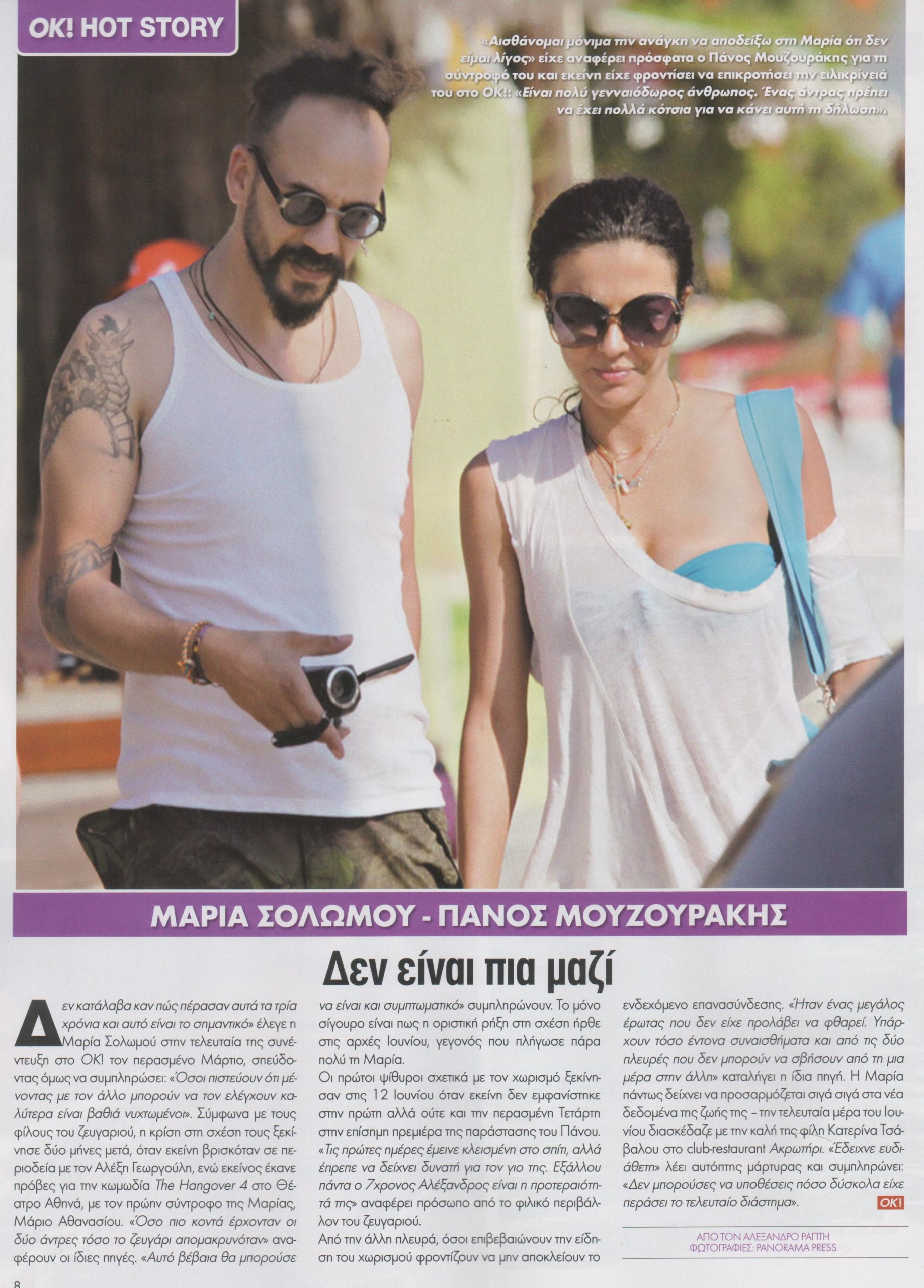 Σύμφωνα με τους φίλους της Μαρίας Σολωμού και του Πάνου Μουζουράκη, η κρίση στη σχέση τους ξεκίνησε όταν εκείνη βρισκόταν σε περιοδεία με τον Αλέξη Γεωργούλη, ενώ εκείνος έκανε πρόβες για την κωμωδία The Hangover 4 στο θέατρο Αθηνά, με τον πρώην σύντροφο της Μαρίας, Μάριο Αθανασίου.