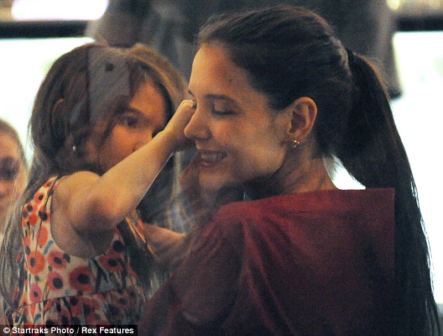 H μικρή Suri φαινόταν ευδιάθετη και έπαιζε με τη μαμά της, που δεν την άφησε από την αγκαλιά της στιγμή.