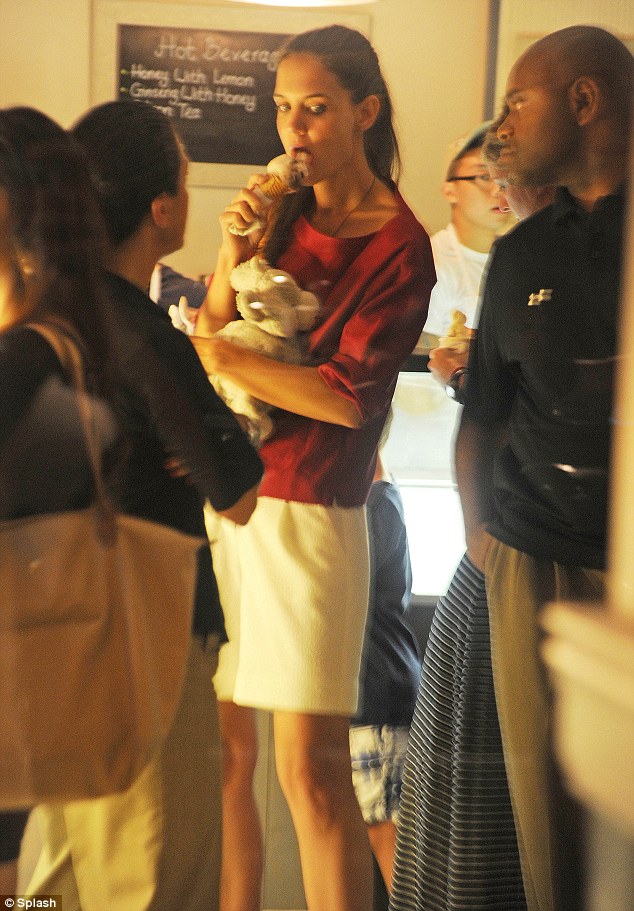 H Katie φαινόταν τόσο λυτρωμένη, όπως γράφουν τα ξένα μέσα, που δεν σταμάτησε να χαμογελάει. Άλλωστε, η καλή της διάθεση φαίνεται και από το γεγονός, ότι υπέκυψε στη γοητεία ενός…παγωτού!
