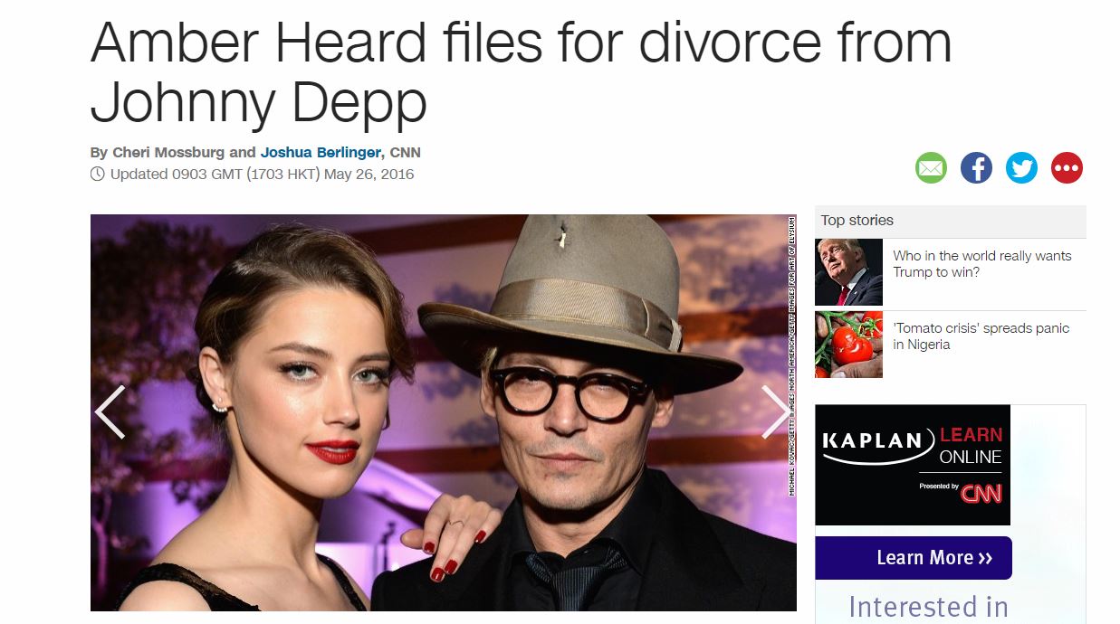 Ο Τζόνι Ντεπ και η Άμπερ Χερντ αποφάσισαν να τραβήξουν χωριστούς δρόμους μετά από ενάμιση χρόνου γάμου.