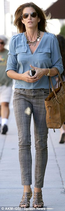 Η Cindy Crawford περπατά στους δρόμους του Beverly Hills. Αγέρωχη, στυλάτη, πάντα όμορφη, ακόμα πιο sexy.Είναι πια 46, παντρεμένη επί 14 χρόνια με τον ιδιοκτήτη νυχτερινών κέντρων Rande Gerber και μητέρα δύο παιδιών, του 13χρονου Presley και της 11χρονης Kaia.