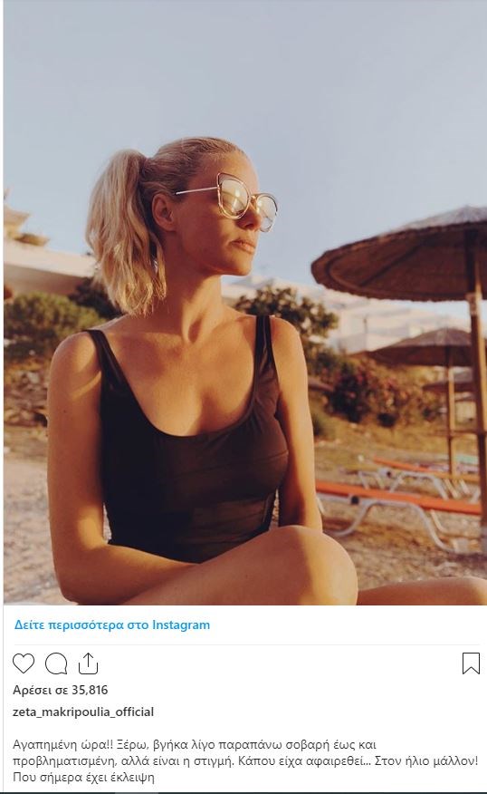 Η Ζέτα σχολίασε στην ανάρτησή της: «Αγαπημένη ώρα!! Ξέρω, βγήκα λίγο παραπάνω σοβαρή έως και προβληματισμένη, αλλά είναι η στιγμή. Κάπου είχα αφαιρεθεί… Στον ήλιο μάλλον! Που σήμερα έχει έκλειψη».