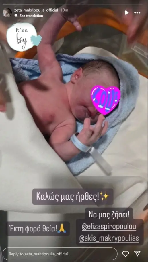 Την χαρμόσυνη αποκάλυψη έκανε μέσα από τον προσωπικό της λογαριασμό στο Instagram σήμερα το μεσημέρι αναρτώντας μια φωτογραφία του νεογέννητου γράφοντας: «Καλώς μας ήρθες! Να μας ζήσει! Έκτη φορά θεία».