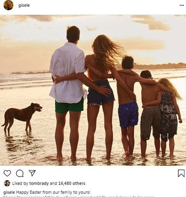 Δύο τρυφερές οικογενειακές φωτογραφίες αγκαλιά με τον σύζυγό της, Τομ Μπρέιντι, και τα παιδιά τους δημοσίευσε η Ζιζέλ, δίνοντας τις πασχαλινές ευχές της στους θαυμαστές της. Το εντυπωσιακό μοντέλο κρατούσε στην αγκαλιά της τον σύζυγό της, ενώ στη δεύτερη φωτογραφία αντάλλαξαν και ένα φιλί. Το ζευγάρι μετακόμιζε στην Φλόριντα και πόζαραν μπροστά στο μαγευτικό ηλιοβασίλεμα, μαζί με τον γιο του Μπρέιντι, Τζον, και τα δύο παιδιά τους Μπέντζαμιν και Βίβιαν.