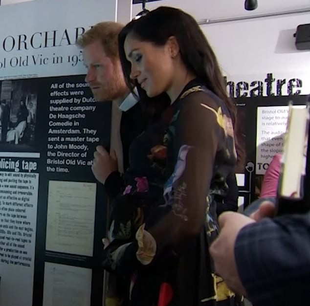 Το πριγκιπικό ζεύγος βρισκόταν στο θέατρο του Μπρίστολ την Παρασκευή και συνομιλούσε με την υπεύθυνη όταν το μωράκι κλώτσησε και η Μέγκαν έπιασε την κοιλιά της κοιτάζοντας χαμηλά και χαμογελώντας τρυφερά.
