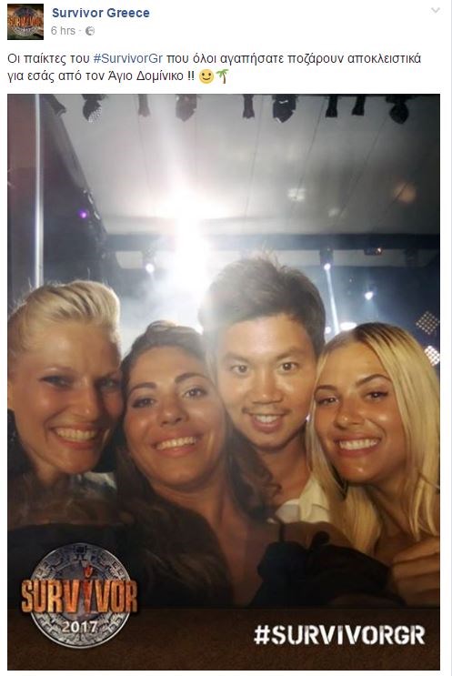 Το τηλεοπτικό κοινό παρακολουθεί για μήνες την προσπάθεια των παικτών του Survivor με στόχο την τελική νίκη.Ωστόσο, επειδή οι παίκτες δεν έχουν την πρόσβαση σε κινητό τηλέφωνο, μας λείπουν οι… selfies. Έτσι, με την ευκαιρία της ένωσης των δύο ομάδων, στο περιθώριο του πάρτι, τέσσερις από τους παίκτες δυο από την ομάδα των μαχητών και δυο από την ομάδα των διασήμων έκαναν κάτι που δεν έχουμε ξαναδεί.Πόζαραν μαζί και επειδή εκείνοι δεν έχουν καμία σχέση με τα κινητά τους και τα social media, η παραγωγή τη δημοσίευσε στο επίσημο προφίλ του παιχνιδιού στο facebook. Σάρα, Ευριδίκη, Ορέστης και Λάουρα δίπλα δίπλα, χαμογελούν στο φακό.