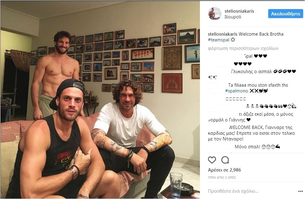 Ο Γιάννης Σπαλιάρας ήταν ο τελευταίος παίκτης που αποχώρησε από το Survivor πριν από τον μεγάλο ημιτελικό.Ο πρώην παίκτης των «Μαχητών» επέστρεψε στην Ελλάδα από τον Άγιο Δομίνικο το βράδυ της Κυριακής, ενώ ο κολλητός του φίλος, Στέλιος Νιάκαρης, ανέβασε μία φωτογραφία στον προσωπικό του λογαριασμό στο Instagram, όπου βρίσκεται με τον Γιάννη Σπαλιάρα στο σαλόνι του σπιτιού του, γιορτάζοντας την επιστροφή του.«Καλώς ήρθες αδελφέ», ήταν η λεζάντα που συνόδευε τη φωτογραφία.Δείτε τη φωτογραφία: