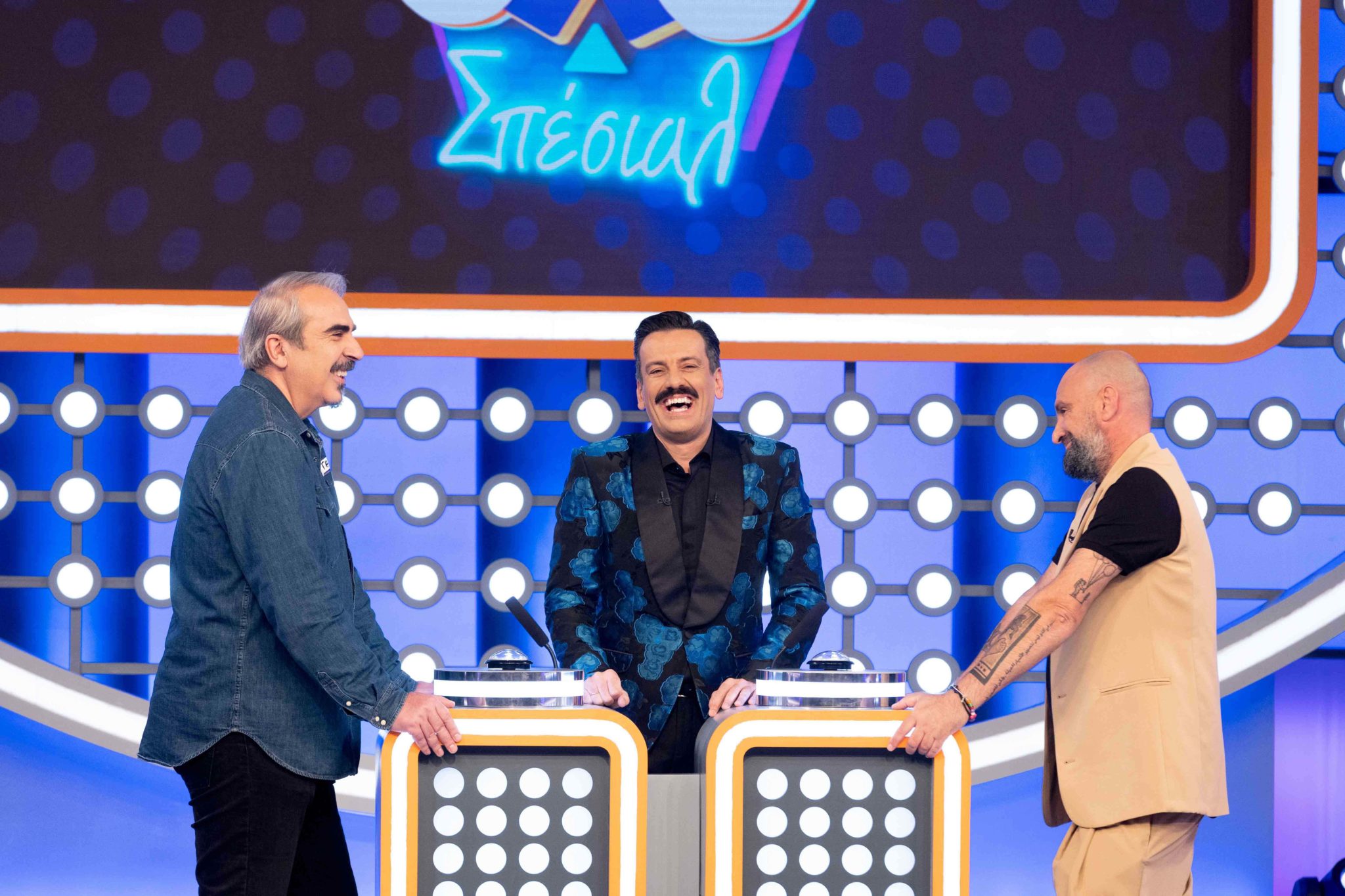 Οι δύο αρχηγοί θα βρεθούν αντίπαλοι σε μία βραδιά γεμάτη μουσική, χορό και διασκέδαση, καθώς στο πλατό του «5×5» ΣΠΕΣΙΑΛ ο Βαγγέλης Περρής τραγουδάει με τουμπερλέκι σε πρώτη παγκόσμια μετάδοση, με τον Γρηγόρη Μπάκα και τον Θάνο Κιούση να συμμετέχουν στο γλέντι με τον δικό τους μοναδικό τρόπο!