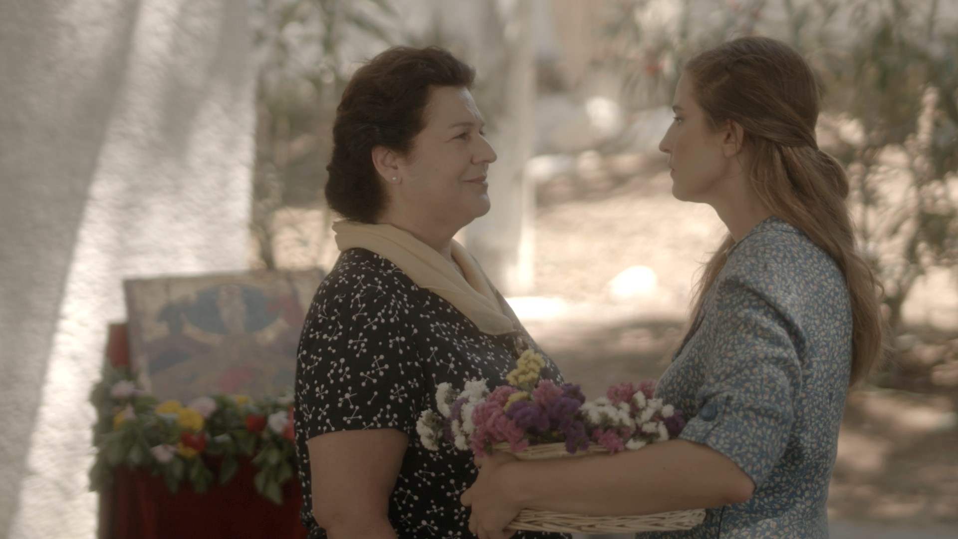 Στον ρόλο της Καλλιόπης, μητέρας της Θεοδοσίας, η Στέλλα Γκίκα