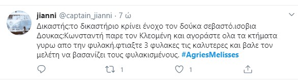 “Πάρτι” έγινε στο Twitter με το χθεσινό επεισόδιο των “Άγριων Μελισσών”. Η δίκη της Ελένης συνεχίζεται, αλλά οι εξελίξεις στο Διαφάνι σε όλα τα μέτωπα δεν σταματούν. Φυσικά, στο “στόχαστρο” των χρηστών των social media βρέθηκε για ακόμη μια φορά η συμπεριφορά του Δούκα Σεβαστού, αλλά και η συγκλονιστική σκηνή της Ελένης για τον φόνο του Γιάννου.