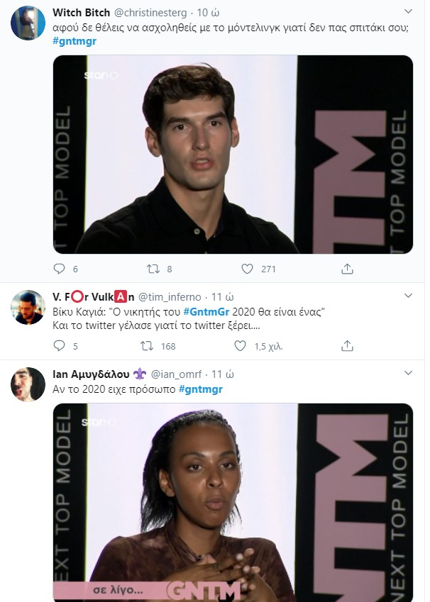 “Πάρτι” έγινε στο Twitterμε το χθεσινό επεισόδιο του GNTM. Μετά τις γυμνές πόζες τα επίδοξα μοντέλα ήρθαν αντιμέτωπα με την κριτική από Καγιά, Σκουλό, Ζενεβιέβ και Μπράτη. Κάποιοι κέρδισαν, κάποιοι έχασαν. Το σίγουρο είναι ότι οι χρήστες στο Twitter σχολίασαν τα πάντα. Από τον τρόπο που η Ρασέλ σχολιάζει τα πάντα και τους πάντες, ενώ αποκαλεί την Βίκυ Καγιά… “Βικάκι”. Ο “γύπας” κατάφερε να παραμείνει στο παιχνίδι, αν και αρκετοί χρήστες πιστεύουν ότι πρέπει να βρεθεί εκτός.