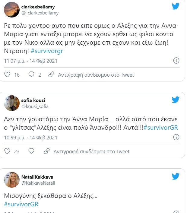 “Είσαι δίπλα με τον Νίκο από την πρώτη μέρα και έχετε έρθει τόσο κοντά, και χαδάκια και κοιμάστε και δίπλα δίπλα το βράδυ. Αυτό τι σε κάνει ως προς τον Άκη; Γιατί εσύ βγαίνεις η αθώα περιστέρα εδώ πέρα και μας βγάζεις ένα προφίλ ότι ξέρεις πολύ καλά τι σου γίνεται και τι συμβαίνει και εγώ είμαι ο τρελός της παρέας” είπε ο Αλέξης Παππάς με την Άννα Μαρία να ξεσπά μετά σε κλάματα.